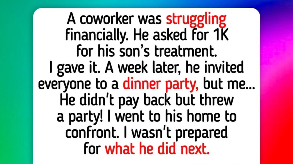 I lent a coworker $1,000 for his son’s medical treatment. Later, I heard about a party at his house I wasn’t invited to. I went to confront him, only to find the “party” was actually a surprise “Thank You” gathering organized for me. I walked in ready to accuse and left reminded that kindness always finds its way back.