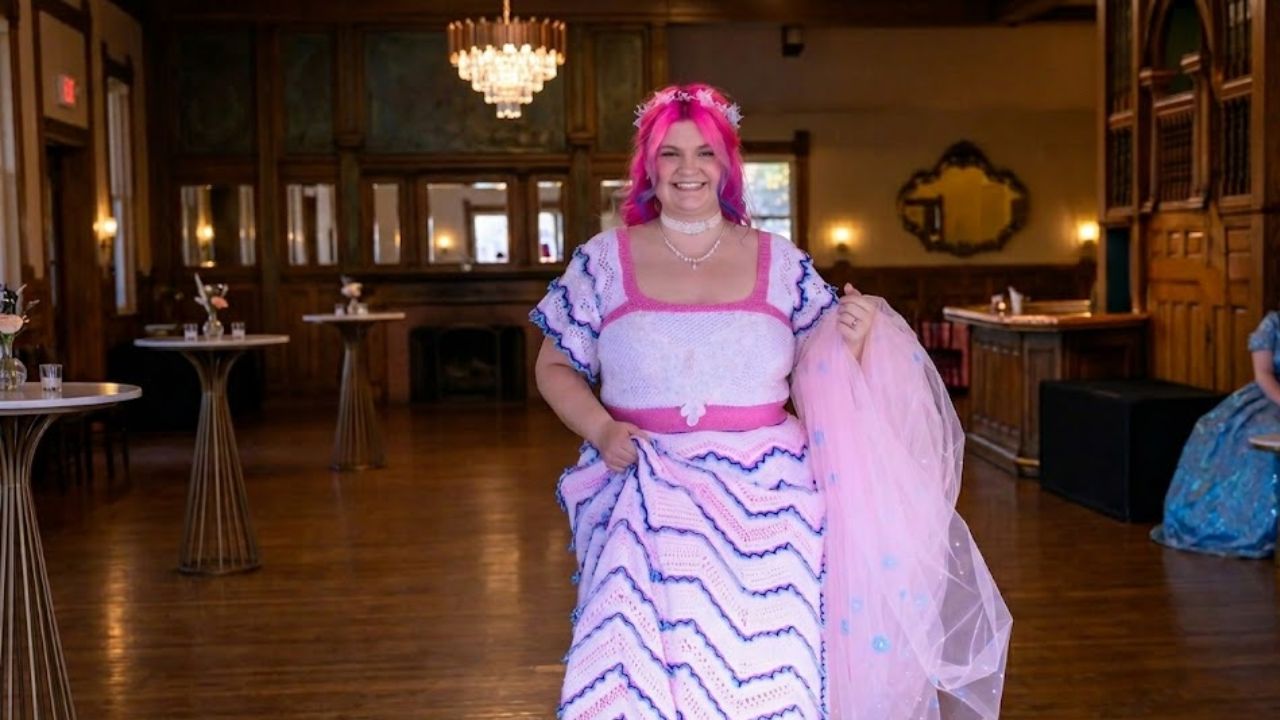 “I made a whole wedding dress out of crochet!” I spent three to four months on this. I finished it about 48 hours before the wedding.